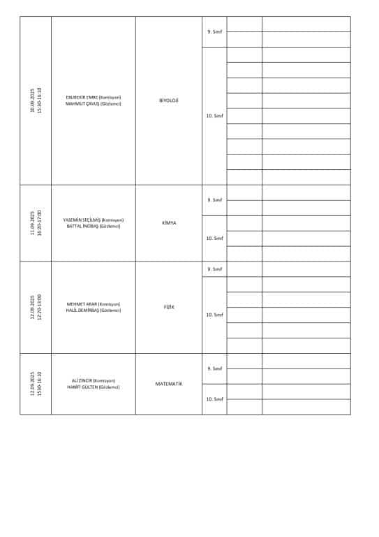 Eylük Ayı Sorumluluk Sınav Tarihleri (09-17 Eylül)